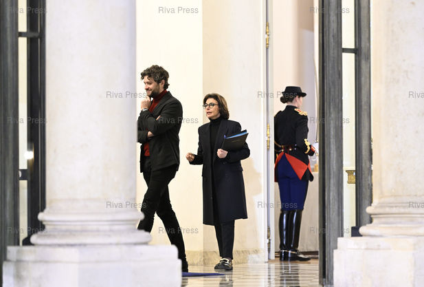 Légende : Conseil des ministres extraordinaire avec présentation d'une loi spéciale pour sortir de l'impasse budgétaire, après l'échec de l'examen parlementaire du budget de l'État. Jonas Bayard, Conseiller Communication - Rachida Dati, Ministre de la Culture /// Extraordinary Council of ministers with presentation of a special law to break the budget deadlock, following the failure of parliamentary review of the state budget. Jonas Bayard, Communications Advisor - Rachida Dati, Minister of Culture - Paris - 22/12/2025 - Photo © Lionel Préau +33 (0)6 68 12 83 77