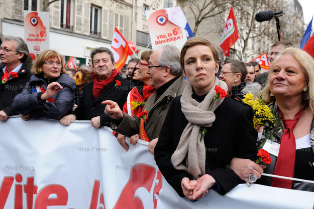 Clémentine Autain, derrière la banderole avec Pierre Laurent, Marie-Georges Buffet, Jean-Luc Mélenchon, Martine Billard, Christian Picquet - Photo © Lionel Préau +33 (0)6 68 12 83 77