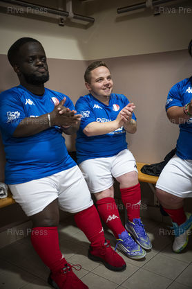 Légende : Le collectif France PPT (Personnes de Petite Taille) est rassemble a Asnieres-sur-Seine pour un weekend d'entrainement et de matchs amicaux. Ce samedi apres-midi, les joueurs venus de toute la France dans le but de preparer la Coupe du monde de football PPT qui se deroulera au Maroc en 2026, se preparent a affronter une equipe U11 et l'equipe senior futsal handisport de l'Academie Club Asnieres. Cree en 2022 a Asnieres-sur-Seine, l'objectif du collectif est d'offrir aux joueurs de petite taille un cadre structure, des competitions officielles et une reconnaissance sportive. Le 05/12/2025 /// The French PPT (People of Short Stature) collective is gathered in Asnières-sur-Seine for a weekend of training and friendly matches. This Saturday afternoon, players from all over France, preparing for the PPT Football World Cup to be held in Morocco in 2026, are getting ready to face an U11 team and the senior futsal team for disabled athletes from the Asnières Academy Club. Created in 2022 in Asnières-sur-Seine, the collective's objective is to offer players of short stature a structured environment, official competitions, and sporting recognition. On December 5, 2025 /// PHOTO Vincent Boisot