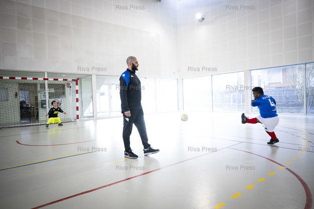 Légende : Le collectif France PPT (Personnes de Petite Taille) est rassemble a Asnieres-sur-Seine pour un weekend d'entrainement et de matchs amicaux. Ce samedi apres-midi, les joueurs venus de toute la France dans le but de preparer la Coupe du monde de football PPT qui se deroulera au Maroc en 2026, se preparent a affronter une equipe U11 et l'equipe senior futsal handisport de l'Academie Club Asnieres. Cree en 2022 a Asnieres-sur-Seine, l'objectif du collectif est d'offrir aux joueurs de petite taille un cadre structure, des competitions officielles et une reconnaissance sportive. Le 05/12/2025 /// The French PPT (People of Short Stature) collective is gathered in Asnières-sur-Seine for a weekend of training and friendly matches. This Saturday afternoon, players from all over France, preparing for the PPT Football World Cup to be held in Morocco in 2026, are getting ready to face an U11 team and the senior futsal team for disabled athletes from the Asnières Academy Club. Created in 2022 in Asnières-sur-Seine, the collective's objective is to offer players of short stature a structured environment, official competitions, and sporting recognition. On December 5, 2025 /// PHOTO Vincent Boisot