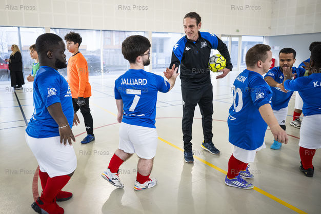 Légende : Le collectif France PPT (Personnes de Petite Taille) est rassemble a Asnieres-sur-Seine pour un weekend d'entrainement et de matchs amicaux. Ce samedi apres-midi, les joueurs venus de toute la France dans le but de preparer la Coupe du monde de football PPT qui se deroulera au Maroc en 2026, jouent contre une equipe de U11 de l'Academie Club Asnieres. Cree en 2022 a Asnieres-sur-Seine, l'objectif du collectif est d'offrir aux joueurs de petite taille un cadre structure, des competitions officielles et une reconnaissance sportive. Le 05/12/2025 /// The French PPT (People of Short Stature) collective is gathered in Asnières-sur-Seine for a weekend of training and friendly matches. This Saturday afternoon, players from all over France, preparing for the PPT Football World Cup to be held in Morocco in 2026, are playing against an U11 team from the Asnières Academy Club. Created in 2022 in Asnières-sur-Seine, the collective's objective is to offer players of short stature a structured environment, official competitions, and sporting recognition. On December 5, 2025 /// PHOTO Vincent Boisot