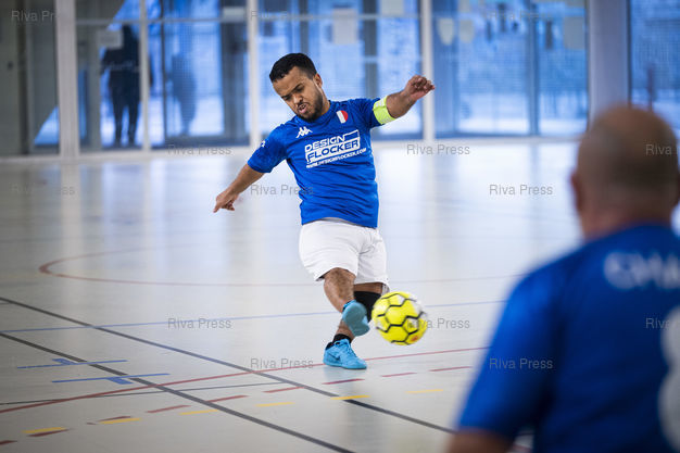 Légende : Le collectif France PPT (Personnes de Petite Taille) est rassemble a Asnieres-sur-Seine pour un weekend d'entrainement et de matchs amicaux. Ce samedi apres-midi, les joueurs venus de toute la France dans le but de preparer la Coupe du monde de football PPT qui se deroulera au Maroc en 2026, jouent contre l'equipe senior futsal handisport de l'Academie Club Asnieres. Cree en 2022 a Asnieres-sur-Seine, l'objectif du collectif est d'offrir aux joueurs de petite taille un cadre structure, des competitions officielles et une reconnaissance sportive. Au centre, le capitaine de l'equipe Mohamed LamyneLe 05/12/2025 /// The French PPT (People of Short Stature) collective is gathered in Asnières-sur-Seine for a weekend of training and friendly matches. This Saturday afternoon, players from all over France, preparing for the PPT Football World Cup to be held in Morocco in 2026, are playing against the senior futsal team for disabled athletes from the Académie Club Asnières. Created in 2022 in Asnières-sur-Seine, the collective's objective is to offer players of short stature a structured environment, official competitions, and sporting recognition. In the center, the team captain Mohamed Lamyne. On December 5, 2025 /// PHOTO Vincent Boisot