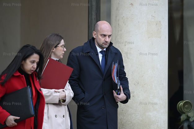 Légende : Conseil des ministres au Palais de l'Elysée. Naïma Moutchou, Ministre des Outre-mer - Aurore Bergé, Ministre déléguée chargée de l'Égalité entre les femmes et les hommes et de la Lutte contre les discriminations - Jean-Noël Barrot, Ministre de l'Europe et des Affaires étrangères /// Council of ministers at the Elysee Palace. Naïma Moutchou, Minister for Overseas Territories - Aurore Bergé, Minister Delegate for Gender Equality and the Fight against Discrimination - Jean-Noël Barrot, Minister for Europe and Foreign Affairs - Paris - 05/01/2026 - Photo © Lionel Préau +33 (0)6 68 12 83 77
