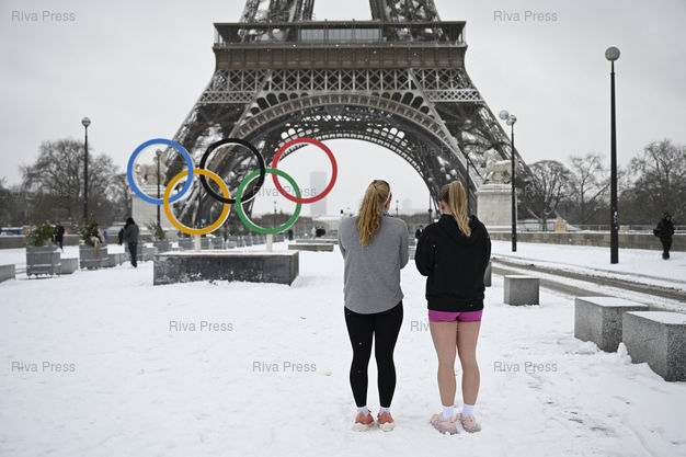 Mots-clés : 2026, anneaux olympiques, athlete, coureurs, course a pieds, Eiffel Tower, Filles, froid, hiver, hivernal, jogger, jogging, neige, olympic rings fille, Paris, parisiens, runners, running, snow, sport, sportif, Sportive, Tour Eiffel, touristes, Tourists