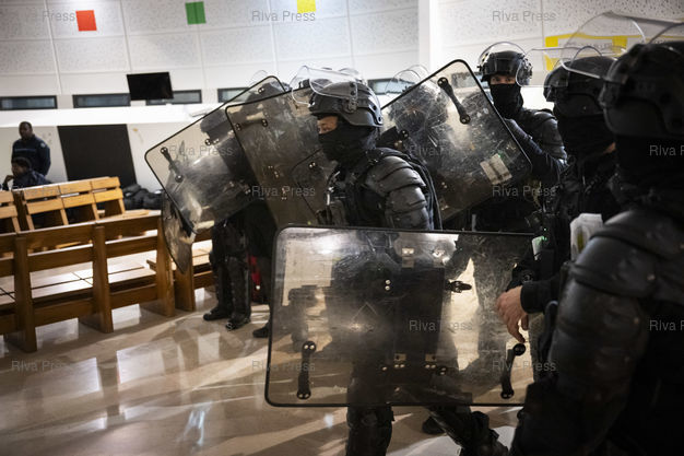 Légende : Des ERIS (Equipes Regionales d'Intervention et de Securite de l'administration penitentiere) de deplacent dans la maison d'arret pour hommes de Fleury-Merogis ou ils participent a une "Fouille XXL". Ces operations sont menees dans tous les centres penitentiers de France a la demande du ministre de l'Intérieur Gerald Darmanin dans le but de lutter contre la presence de telephones portables en prison, mais aussi de stupefiants et de tout autre objet interdit. Le 10/12/2025 /// ERIS (Regional Intervention and Security Teams of the prison administration) are deployed to the Fleury-Mérogis men's prison where they are participating in a "XXL Search". These operations are being carried out in all French prisons at the request of Interior Minister Gérald Darmanin in order to combat the presence of mobile phones in prison, as well as narcotics and any other prohibited items. On December 10, 2025 /// PHOTO Vincent Boisot