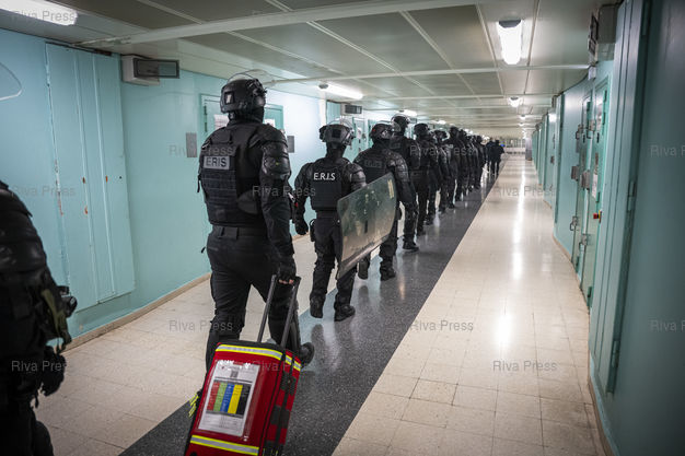 Légende : Des ERIS (Equipes Regionales d'Intervention et de Securite de l'administration penitentiere) de deplacent dans la maison d'arret pour hommes de Fleury-Merogis ou ils participent a une "Fouille XXL". Ces operations sont menees dans tous les centres penitentiers de France a la demande du ministre de l'Intérieur Gerald Darmanin dans le but de lutter contre la presence de telephones portables en prison, mais aussi de stupefiants et de tout autre objet interdit. Le 10/12/2025 /// ERIS (Regional Intervention and Security Teams of the prison administration) are deployed to the Fleury-Mérogis men's prison where they are participating in a "XXL Search". These operations are being carried out in all French prisons at the request of Interior Minister Gérald Darmanin in order to combat the presence of mobile phones in prison, as well as narcotics and any other prohibited items. On December 10, 2025 /// PHOTO Vincent Boisot