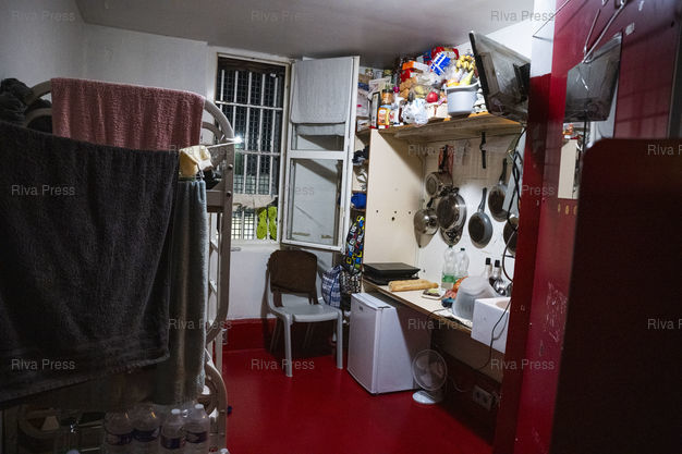 Légende : Interieur d'une cellule de detenus de la maison d'arret pour hommes de Fleury-Merogis, alors que des "Fouilles XXL" sont en cours dans cet etablissement penitentiaire. Ces operations sont menees dans tous les centres penitentiers de France a la demande du ministre de l'Intérieur Gerald Darmanin dans le but de lutter contre la presence de telephones portables en prison, mais aussi de stupefiants et de tout autre objet interdit. Le 10/12/2025 /// Inside a cell at the Fleury-Mérogis men's prison, during "XXL Searches" underway at the facility. These operations are being carried out in all French prisons at the request of Interior Minister Gérald Darmanin, with the aim of combating the presence of mobile phones in prison, as well as narcotics and other prohibited items. On December 10, 2025 /// PHOTO Vincent Boisot
