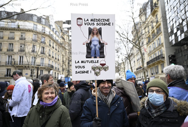 Légende : Manifestation des médecins libéraux, dans le cadre d'une grève du 5 au 15 janvier, contre une "dérive autoritaire" qui menace selon eux leur "liberté d’exercice" /// Demonstration by private practice doctors, as part of a strike from January 5th to 15th, against an "authoritarian drift" which they say threatens their "freedom to practice" - Paris - 10/01/2026 - Photo © Lionel Préau +33 (0)6 68 12 83 77