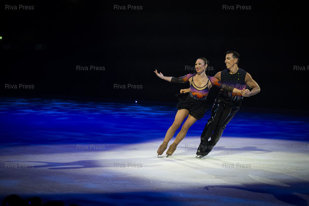 Légende : Les Canadiens Andy Buchanan et Robin Johnstone patinent en couple pour Holiday on Ice. Dans le cadre de sa tournee europeenne 2025/2026, la troupe d'Holiday on Ice joue son spectacle "Horizons" sur le theme "Ecoute les battements de la ville !" dans la ville de Breda aux Pays-Bas. Le 12/12/2025 /// Canadians Andy Buchanan and Robin Johnstone skates for Holiday on Ice. As part of its 2025/2026 European tour, the Holiday on Ice troupe is performing its show "Horizons" with the theme "Feel the City Beat" in the city of Breda in the Netherlands. On December 12, 2025 /// PHOTO Vincent Boisot