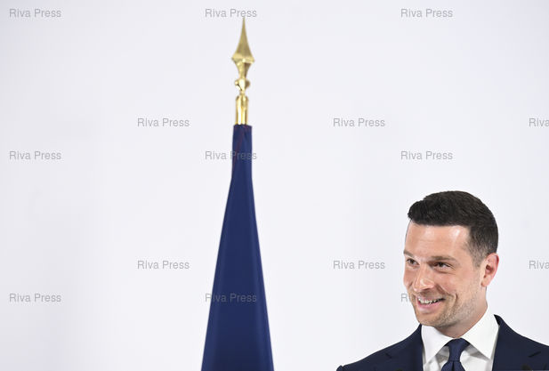 Légende : Jordan Bardella, président du Rassemblement National et député européen, présente ses vœux à la presse /// Jordan Bardella, president of the Rassemblement National party, and MEP, presents his New Year's wishes to the press - Paris - 12/01/2026 - Photo © Lionel Préau +33 (0)6 68 12 83 77