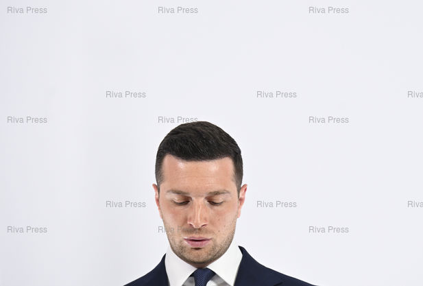 Légende : Jordan Bardella, président du Rassemblement National et député européen, présente ses vœux à la presse /// Jordan Bardella, president of the Rassemblement National party, and MEP, presents his New Year's wishes to the press - Paris - 12/01/2026 - Photo © Lionel Préau +33 (0)6 68 12 83 77