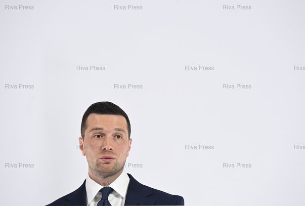 Légende : Jordan Bardella, président du Rassemblement National et député européen, présente ses vœux à la presse /// Jordan Bardella, president of the Rassemblement National party, and MEP, presents his New Year's wishes to the press - Paris - 12/01/2026 - Photo © Lionel Préau +33 (0)6 68 12 83 77