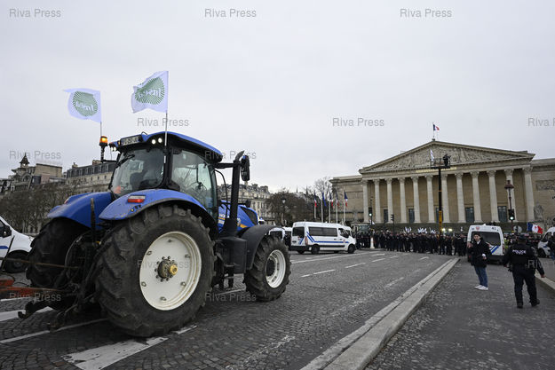 Légende : Des centaines d'agriculteurs en colère manifestent près de l'Assemblée nationale pour protester contre la signature à venir du traité de libre-échange entre l'UE et le Mercosur, et pour réclamer des simplifications administratives /// Hundreds of angry farmers are demonstrating near the National Assembly to protest against the upcoming signing of the free trade agreement between the EU and Mercosur, and to demand administrative simplifications - Paris - 13/01/2026 - Photo © Lionel Préau +33 (0)6 68 12 83 77