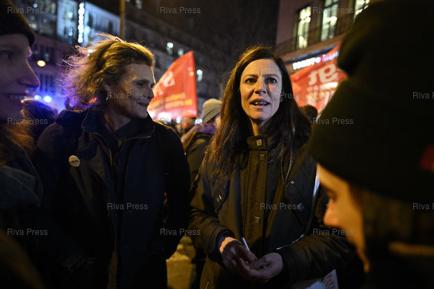 Légende : Rassemblement pour dénoncer l'emprise et les violences faites aux femmes dans le cinéma à proximité de l'Olympia où se déroule la Cérémonie des César, grande soirée du cinéma français. Anna Mouglalis, actrice /// Rally to denounce the influence and violence against women in the cinema near the Olympia where the César Ceremony takes place, a great evening of French cinema. Anna Mouglalis, actress - Paris - 23/02/2024 - Photo © Lionel Préau +33 (0)6 68 12 83 77
