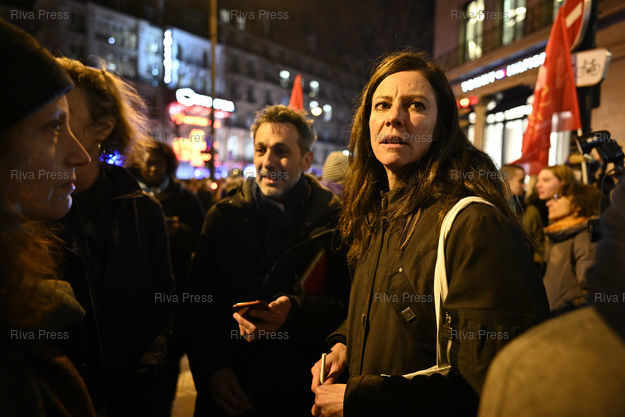 Légende : Rassemblement pour dénoncer l'emprise et les violences faites aux femmes dans le cinéma à proximité de l'Olympia où se déroule la Cérémonie des César, grande soirée du cinéma français. Anna Mouglalis, actrice /// Rally to denounce the influence and violence against women in the cinema near the Olympia where the César Ceremony takes place, a great evening of French cinema. Anna Mouglalis, actress - Paris - 23/02/2024 - Photo © Lionel Préau +33 (0)6 68 12 83 77