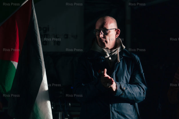 Légende : Vincent Louvet, candidat (Rassemblement citoyen) aux elections municipales d'Herouville-Saint-Clair (Calvados) les 15 et 22 mars 2026, face au maire sortant Rodolphe Thomas (Modem), pendant son meeting aux cotes du rappeur havrais Medine. Le rappeur etait invite en soutien au candidat de gauche, et a tenu un showcase (mini concert gratuit). Le Rassemblement National de la Jeunesse du Calvados a reclame l'annulation de la venue de Medine, souvent pris pour cible par l'extreme droite pour ses pretendues attaques à la laîcité ou des textes jugés « radicaux ». 17 janvier 2026, Herouville-Saint-Clair. Teo Manisier / Riva Press /// Vincent Louvet, candidate (Rassemblement citoyen) in the municipal elections in Herouville-Saint-Clair (Calvados) on March 15 and 22, 2026, facing incumbent mayor Rodolphe Thomas (Modem), during his rally alongside Le Havre rapper Medine. The rapper was invited to support the left-wing candidate and held a showcase (free mini-concert). The Calvados National Youth Rally called for the cancellation of Medine's appearance, as he is often targeted by the far right for his alleged attacks on secularism and lyrics deemed "radical." January 17, 2026, Herouville-Saint-Clair. Teo Manisier / Riva Press ///
