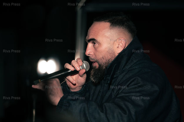Légende : Le rappeur havrais Medine au meeting de Vincent Louvet, candidat (Rassemblement citoyen) aux elections municipales d'Herouville-Saint-Clair (Calvados) les 15 et 22 mars 2026, face au maire sortant Rodolphe Thomas (Modem). Le rappeur etait invite en soutien au candidat de gauche, et a tenu un showcase (mini concert gratuit). Le Rassemblement National de la Jeunesse du Calvados a reclame l'annulation de la venue de Medine, souvent pris pour cible par l'extreme droite pour ses pretendues attaques à la laîcité ou des textes jugés « radicaux ». 17 janvier 2026, Herouville-Saint-Clair. Teo Manisier / Riva Press /// The rapper Medine from Le Havre at the rally of Vincent Louvet, candidate (Rassemblement citoyen) in the municipal elections in Herouville-Saint-Clair (Calvados) on March 15 and 22, 2026, against the outgoing mayor Rodolphe Thomas (Modem). The rapper was invited to support the left-wing candidate and held a showcase (free mini-concert). The Calvados National Youth Rally called for the cancellation of Medine's appearance, as he is often targeted by the far right for his alleged attacks on secularism and lyrics deemed "radical." January 17, 2026, Herouville-Saint-Clair. Teo Manisier / Riva Press