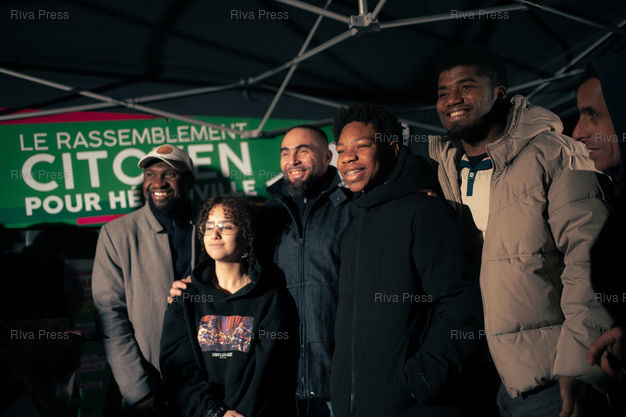 Légende : Le rappeur havrais Medine au meeting de Vincent Louvet, candidat (Rassemblement citoyen) aux elections municipales d'Herouville-Saint-Clair (Calvados) les 15 et 22 mars 2026, face au maire sortant Rodolphe Thomas (Modem). Le rappeur etait invite en soutien au candidat de gauche, et a tenu un showcase (mini concert gratuit). Le Rassemblement National de la Jeunesse du Calvados a reclame l'annulation de la venue de Medine, souvent pris pour cible par l'extreme droite pour ses pretendues attaques à la laîcité ou des textes jugés « radicaux ». 17 janvier 2026, Herouville-Saint-Clair. Teo Manisier / Riva Press /// The rapper Medine from Le Havre at the rally of Vincent Louvet, candidate (Rassemblement citoyen) in the municipal elections in Herouville-Saint-Clair (Calvados) on March 15 and 22, 2026, against the outgoing mayor Rodolphe Thomas (Modem). The rapper was invited to support the left-wing candidate and held a showcase (free mini-concert). The Calvados National Youth Rally called for the cancellation of Medine's appearance, as he is often targeted by the far right for his alleged attacks on secularism and lyrics deemed "radical." January 17, 2026, Herouville-Saint-Clair. Teo Manisier / Riva Press