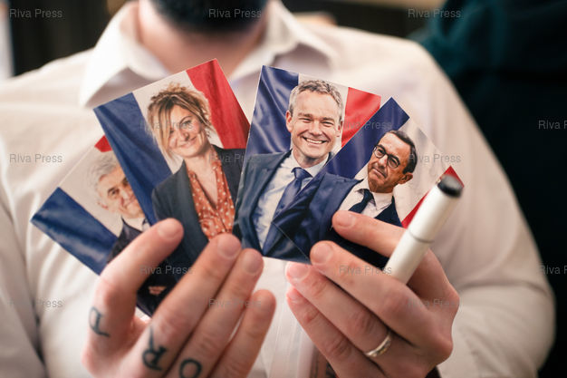 Légende : La soiree de lancement de la campagne de Camille Margueritte, candidate d'opposition (LR) a la mairie de Cherbourg-en-Cotentin (Manche) pour les elections municipales des 15 et 22 mars 2026. Cherbourg-en-Cotentin, 23 janvier 2026. Teo Manisier / Riva Press /// The launch party for Camille Margueritte's campaign, opposition candidate (LR) for mayor of Cherbourg-en-Cotentin (Manche) in the municipal elections on March 15 and 22, 2026. Sur les cartes : le senateur (LR) David Margueritte, la cnadidate d'opposition a la mairie de Cherbourg Camile Margueritte (LR), l'ancien ministre des armees et President de la région Normandie Herve Morin et l'ancien ministre de l'Interieur, senateur (LR) et president des Republicains Bruno Retailleau. Cherbourg-en-Cotentin, January 23, 2026. Teo Manisier / Riva Press /// The launch party for Camille Margueritte's campaign, opposition candidate (LR) for mayor of Cherbourg-en-Cotentin (Manche) for the municipal elections on March 15 and 22, 2026. Cherbourg-en-Cotentin, January 23, 2026. Teo Manisier / Riva Press /// The launch party for Camille Margueritte's campaign, opposition candidate (LR) for mayor of Cherbourg-en-Cotentin (Manche) in the municipal elections on March 15 and 22, 2026. On the cards: Senator (LR) David Margueritte, opposition candidate for mayor of Cherbourg Camile Margueritte (LR), former Minister of the Armed Forces and President of the Normandy region Herve Morin, and former Minister of the Interior, Senator (LR) and President of the Republicans Bruno Retailleau. Cherbourg-en-Cotentin, January 23, 2026. Teo Manisier / Riva Press
