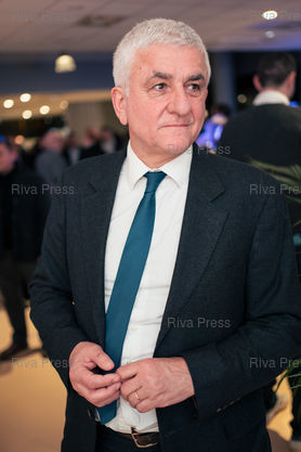 Légende : L'ancien ministre des armees et President de la région Normandie Herve Morin (Les Centristes) a la soiree de lancement de campagne de Camille Margueritte (LR), candidate aux elections municipales les 15 et 22 mars 2026 de Cherbourg-en-Cotentin (Manche). Cherbourg, 23 janvier 2026. Teo Manisier / Riva Press /// Former Minister of Defense and President of the Normandy region Hervé Morin (Les Centristes) at the campaign launch party for Camille Margueritte (LR), candidate in the March 15 and 22, 2026 municipal elections in Cherbourg-en-Cotentin (Manche). Cherbourg, January 23, 2026. Teo Manisier / Riva Press