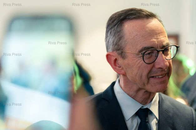 Légende : L'ancien ministre de l'Interieur, senateur (LR) et president des Republicains Bruno Retailleau au lancement de la campagne de Camille Margueritte, candidate d'opposition (LR) a la mairie de Cherbourg-en-Cotentin (Manche) contre le maire socialiste sortant Benoit Arrive, le 23 janvier 2026 a la salle Montecot a Cherbourg, pour les elections municipales des 15 et 22 mars 2026. Cherbourg-en-Cotentin, 23 janvier 2026. Teo Manisier / Riva Press /// Former Minister of the Interior, Senator (LR) and President of Les Républicains Bruno Retailleau at the launch of Camille Margueritte's campaign, opposition candidate (Republicans) for mayor of Cherbourg-en-Cotentin (Manche) against outgoing socialist mayor Benoit Arrive, on January 23, 2026, at the Salle Montecot in Cherbourg, for the municipal elections on March 15 and 22, 2026. Cherbourg-en-Cotentin, January 23, 2026. Teo Manisier / Riva Press