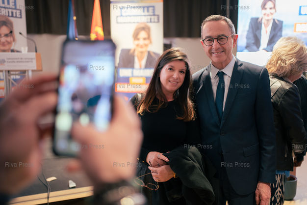 Légende : L'ancien ministre de l'Interieur, senateur (LR) et president des Republicains Bruno Retailleau au lancement de la campagne de Camille Margueritte, candidate d'opposition (LR) a la mairie de Cherbourg-en-Cotentin (Manche) contre le maire socialiste sortant Benoit Arrive, le 23 janvier 2026 a la salle Montecot a Cherbourg, pour les elections municipales des 15 et 22 mars 2026. Cherbourg-en-Cotentin, 23 janvier 2026. Teo Manisier / Riva Press /// Former Minister of the Interior, Senator (LR) and President of Les Républicains Bruno Retailleau at the launch of Camille Margueritte's campaign, opposition candidate (Republicans) for mayor of Cherbourg-en-Cotentin (Manche) against outgoing socialist mayor Benoit Arrive, on January 23, 2026, at the Salle Montecot in Cherbourg, for the municipal elections on March 15 and 22, 2026. Cherbourg-en-Cotentin, January 23, 2026. Teo Manisier / Riva Press