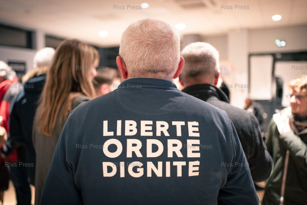 Légende : La soiree de lancement de la campagne de Camille Margueritte, candidate d'opposition (LR) a la mairie de Cherbourg-en-Cotentin (Manche) pour les elections municipales des 15 et 22 mars 2026. Cherbourg-en-Cotentin, 23 janvier 2026. Teo Manisier / Riva Press /// The launch party for Camille Margueritte's campaign, opposition candidate (LR) for mayor of Cherbourg-en-Cotentin (Manche) in the municipal elections on March 15 and 22, 2026. Cherbourg-en-Cotentin, January 23, 2026. Teo Manisier / Riva Press