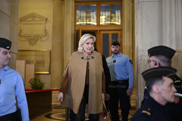 Légende : Procès en appel de Marine Le Pen et onze personnes dans l'affaire des assistants parlementaires du FN. Marine Le Pen après les réquisitions prononcées par les avocats généraux /// Appeal trial of Marine Le Pen and eleven people in the case of the parliamentary assistants of the Front National party. Marine Le Pen after the requisitions pronounced by the public prosecutors - Paris - 03/02/2026 - Photo © Lionel Préau +33 (0)6 68 12 83 77
