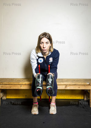 Légende : Font-Romeu, le 14 decembre 2021 - Portrait de Tifany HUOT-MARCHAND. Entrainement de l'Equipe de France de short-track a la patinoire du Creps CNEA (Centre national d'entrainement en altitude) de Font Romeu (Pyrenees Orientales). PHOTO: Vincent NGUYEN / Riva Press