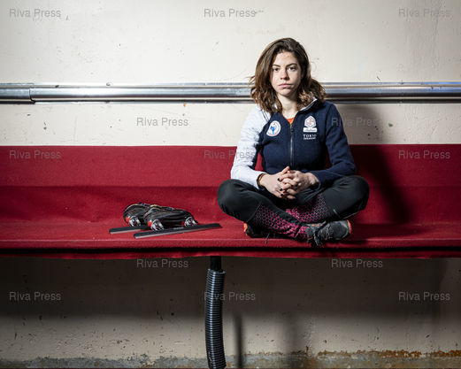 Légende : Font-Romeu, le 14 decembre 2021 - Portrait de Gwendoline DAUDET. Entrainement de l'Equipe de France de short-track a la patinoire du Creps CNEA (Centre national d'entrainement en altitude) de Font Romeu (Pyrenees Orientales). PHOTO: Vincent NGUYEN / Riva Press