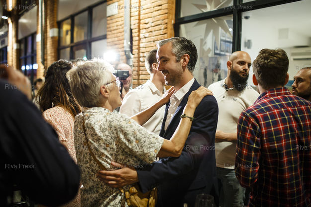 Légende : Toulouse, le 28 juin 2020 - Antoine Maurice et ses partisans se retrouvent au restaurant le J'Go, apres l'annonce de la defaite du candidat ecologiste a Toulouse le jour du second tour des elections muncipales a Toulouse. PHOTO: Vincent NGUYEN / Riva Press pour Le Monde