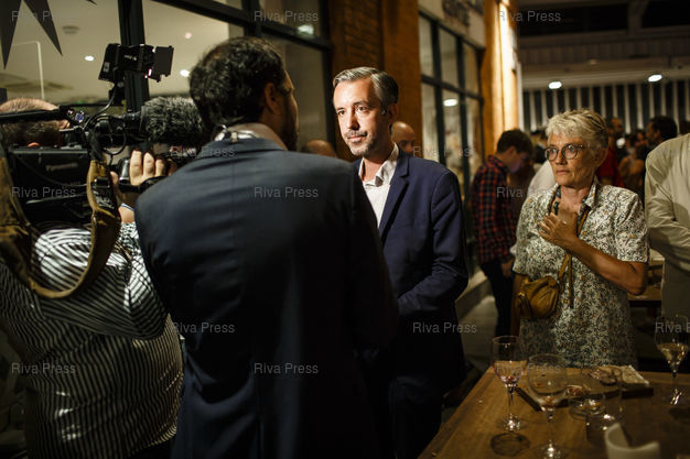 Légende : Toulouse, le 28 juin 2020 - Antoine Maurice et ses partisans se retrouvent au restaurant le J'Go, apres l'annonce de la defaite du candidat ecologiste a Toulouse le jour du second tour des elections muncipales a Toulouse. PHOTO: Vincent NGUYEN / Riva Press pour Le Monde