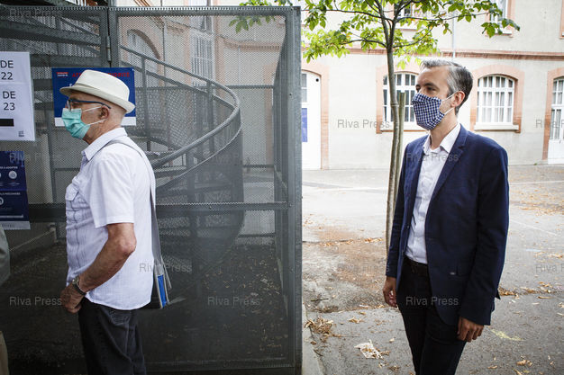 Légende : Toulouse, le 28 juin 2020 - Antoine Maurice, candidat ecologiste de la liste Archipel Citoyen (ecologistes, gauche) vote a Toulouse dans le quartier Bonnefoy le jour du second tour des elections muncipales a Toulouse. PHOTO: Vincent NGUYEN / Riva Press pour Le Monde
