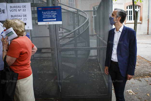 Légende : Toulouse, le 28 juin 2020 - Antoine Maurice, candidat ecologiste de la liste Archipel Citoyen (ecologistes, gauche) vote a Toulouse dans le quartier Bonnefoy le jour du second tour des elections muncipales a Toulouse. PHOTO: Vincent NGUYEN / Riva Press pour Le Monde