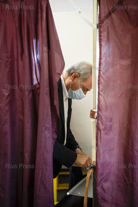 Légende : Toulouse, le 28 juin 2020 - Jean-Luc Moudenc, maire sortant LR vote a Toulouse le jour du second tour des elections muncipales a Toulouse. PHOTO: Vincent NGUYEN / Riva Press pour Le Monde