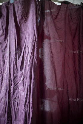 Légende : Toulouse, le 24 avril 2022 - Des électeurs dans l'isoloir votent dans un bureau de vote du quartier résidentiel de La Côte Pavée à Toulouse le jour du second tour de l'élection présidentielle.