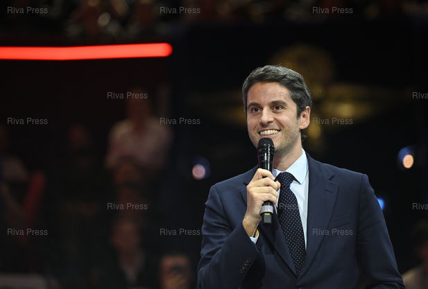 Légende : Meeting de Pierre-Yves Bournazel, candidat à la mairie de Paris investi par les partis Renaissance et Horizons. Gabriel Attal /// Meeting of Pierre-Yves Bournazel, candidate for mayor of Paris endorsed by the Renaissance and Horizons parties. Gabriel Attal, former prime minister - Paris - 10/02/2026 - Photo © Lionel Préau +33 (0)6 68 12 83 77