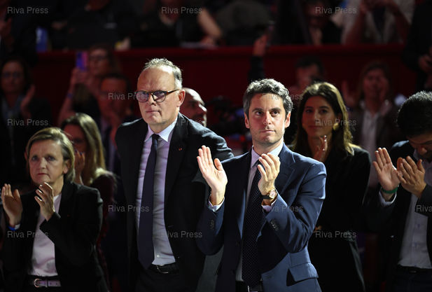 Légende : Meeting de Pierre-Yves Bournazel, candidat à la mairie de Paris investi par les partis Renaissance et Horizons. Edouard Philippe et Gabriel Attal /// Meeting of Pierre-Yves Bournazel, candidate for mayor of Paris endorsed by the Renaissance and Horizons parties. Edouard Philippe and Gabriel Attal, former prime ministers - Paris - 10/02/2026 - Photo © Lionel Préau +33 (0)6 68 12 83 77