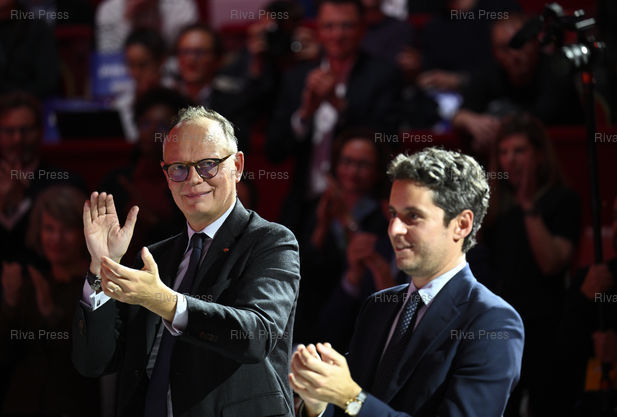 Légende : Meeting de Pierre-Yves Bournazel, candidat à la mairie de Paris investi par les partis Renaissance et Horizons. Edouard Philippe et Gabriel Attal /// Meeting of Pierre-Yves Bournazel, candidate for mayor of Paris endorsed by the Renaissance and Horizons parties. Edouard Philippe and Gabriel Attal, former prime ministers - Paris - 10/02/2026 - Photo © Lionel Préau +33 (0)6 68 12 83 77