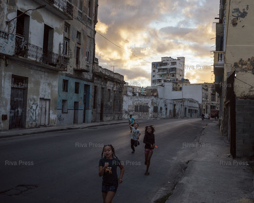 Légende : Des enfants jouent dans une rue du centre de La Havane, Cuba, le 1er janvier 2026. © Lucien Lung / Riva Press *** Children play in a street in downtown Havana, Cuba, on January 1, 2026. © Lucien Lung / Riva Press