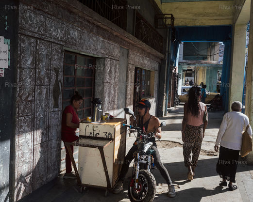 Légende : Vendeuse de café sur l'avenue Padre Varela (plus connue sous le nom Belascoain). La Havane, Cuba, le 5 janvier 2026. © Lucien Lung / Riva Press *** Coffee vendor on Padre Varela Avenue (better known as Belascoain). Havana, Cuba, January 5, 2026. © Lucien Lung / Riva Press