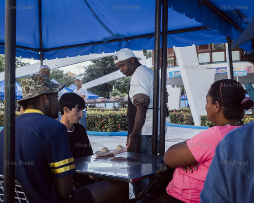 Légende : Des Cubains attendent leur glace au glacier Coppelia, dans le quartier de Vedado de La Havane, Cuba, le 3 janvier 2026. Lancé par Fidel Castro pour offrir de la glace cubaine à tous, le glacier est victime de la crise. Aujourd'hui, il ne propose plus qu'un parfum de glace, vanille, avec de la poudre de cacahuète par dessus. © Lucien Lung / Riva Press *** Cubans wait for their ice cream at the Coppelia ice cream parlor in the Vedado neighborhood of Havana, Cuba, on January 3, 2026. Launched by Fidel Castro to offer Cuban ice cream to everyone, the ice cream parlor has fallen victim to the economic crisis. Today, it only offers one flavor: vanilla, topped with peanut powder. © Lucien Lung / Riva Press