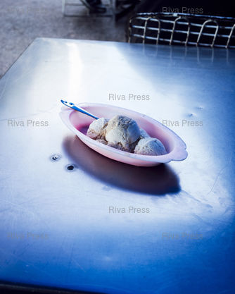 Légende : Glace vanille et poudre de cacahuète, unique parfum disponible. Coppelia, La Havane, Cuba, le 3 janvier 2026. © Lucien Lung / Riva Press *** Vanilla ice cream with peanut powder, the only flavor available. Coppelia, Havana, Cuba, January 3, 2026. © Lucien Lung / Riva Press