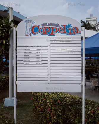 Légende : Menu, Coppelia, La Havane, Cuba, le 3 janvier 2026. Lancé par Fidel Castro pour offrir de la glace cubaine à tous, le glacier est victime de la crise. Aujourd'hui, il ne propose plus qu'un parfum de glace, vanille, avec de la poudre de cacahuète par dessus. © Lucien Lung / Riva Press *** Menu, Coppelia, Havana, Cuba, January 3, 2026. Launched by Fidel Castro to offer Cuban ice cream to everyone, the ice cream parlor has fallen victim to the economic crisis. Today, it only offers one flavor: vanilla, with peanut powder on top. © Lucien Lung / Riva Press