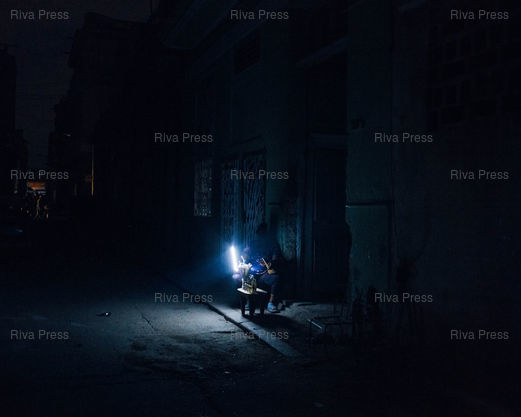 Légende : Une habitante de La Havane vend des bonbons et du rhum, éclairée grâce à sa lampe rechargeable, lors d'une coupure d'électricité dans le quartier Habana Centro, la Havane, Cuba, 8 janvier 2026. © Lucien Lung / Riva Press *** A Havana resident sells candy and rum, illuminated by her rechargeable lamp, during a power outage in the Habana Centro neighborhood of Havana, Cuba, January 8, 2026. © Lucien Lung / Riva Press