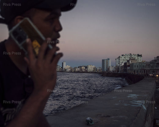 Légende : Raymel s'est installé sur le Malecón avec un ami pour y boire des bières pendant leur journée de repos. Vendeur dans une "Mipyme", il gagne 8000 pesos (19 dollars) pour 24h de travail. Employé deux jours par semaine, il gagne en moyenne 80 dollars par mois, quatre fois plus qu'un médecin. 'C'est absurde', dit-il. La Havane, Cuba, le 5 janvier 2026. © Lucien Lung / Riva Press *** Raymel settled down on the Malecón with a friend to drink beers on their day off. A vendor at a "Mipyme" (a type of roadside café), he earns 8,000 pesos ($19) for a 24-hour shift. Working two days a week, he earns an average of $80 a month, four times more than a doctor. "It's absurd," he says. Havana, Cuba, January 5, 2026. © Lucien Lung / Riva Press