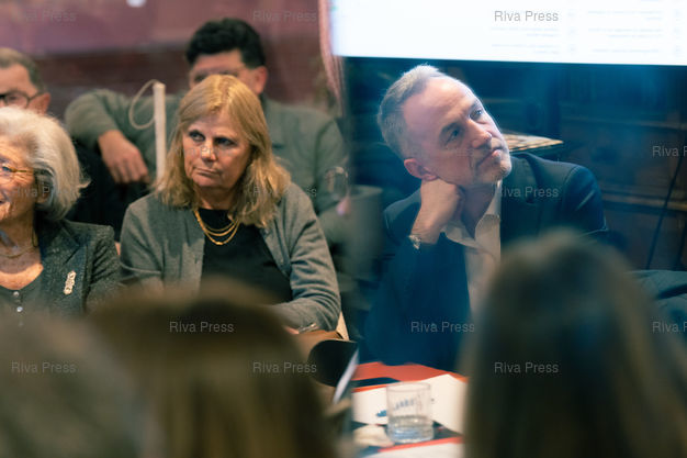 Légende : Le candidat socialiste aux elections municipales de 2026 a Paris Emmanuel Gregoire, a une reunion publique dans le 5e arrondissement de Paris, en compagnie de candidate socialiste pour la Mairie du 5? arrondissement Marine Rosset. Paris, 16 fevrier 2026. Teo Manisier / RIVA PRESS /// Emmanuel Gregoire, the Socialist candidate for the 2026 municipal elections in Paris, holds a public meeting in the 5th arrondissement of Paris, accompanied by Marine Rosset, the Socialist candidate for mayor of the 5th arrondissement. Paris, February 16, 2026. Teo Manisier / RIVA PRESS