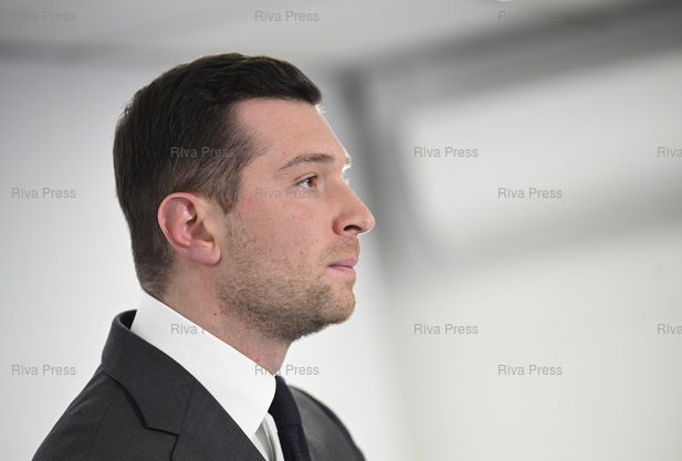 Légende : Jordan Bardella, président du RN, s'exprime après la mort du militant nationaliste Quentin Deranque, mettant en cause l'extrême gauche et la responsabilité de la France Insoumise /// Jordan Bardella, president of the Rassemblement National, speaks out after the death of nationalist activist Quentin Deranque, blaming the far left and the responsibility of La France Insoumise - Paris - 18/02/2026 - Photo © Lionel Préau +33 (0)6 68 12 83 77