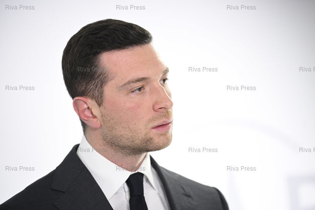 Légende : Jordan Bardella, président du RN, s'exprime après la mort du militant nationaliste Quentin Deranque, mettant en cause l'extrême gauche et la responsabilité de la France Insoumise /// Jordan Bardella, president of the Rassemblement National, speaks out after the death of nationalist activist Quentin Deranque, blaming the far left and the responsibility of La France Insoumise - Paris - 18/02/2026 - Photo © Lionel Préau +33 (0)6 68 12 83 77