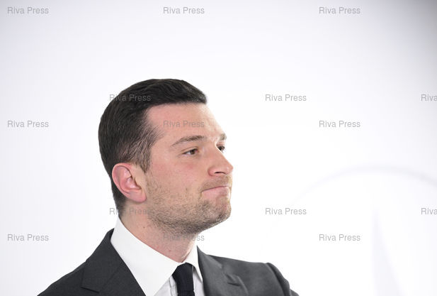 Légende : Jordan Bardella, président du RN, s'exprime après la mort du militant nationaliste Quentin Deranque, mettant en cause l'extrême gauche et la responsabilité de la France Insoumise /// Jordan Bardella, president of the Rassemblement National, speaks out after the death of nationalist activist Quentin Deranque, blaming the far left and the responsibility of La France Insoumise - Paris - 18/02/2026 - Photo © Lionel Préau +33 (0)6 68 12 83 77